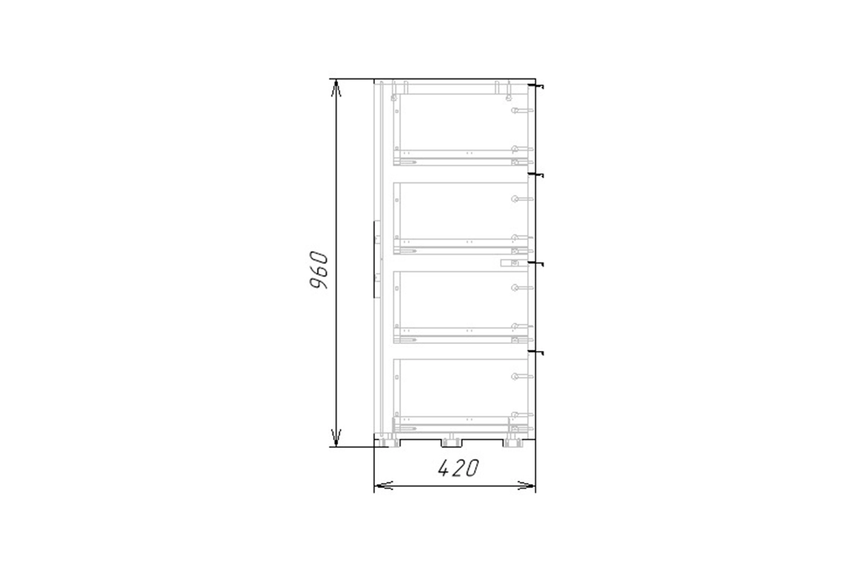 Комплектация: шариковые направляющие 100% выдвижения, опора регулируемая Н20мм, ручка торцевая арт.19282