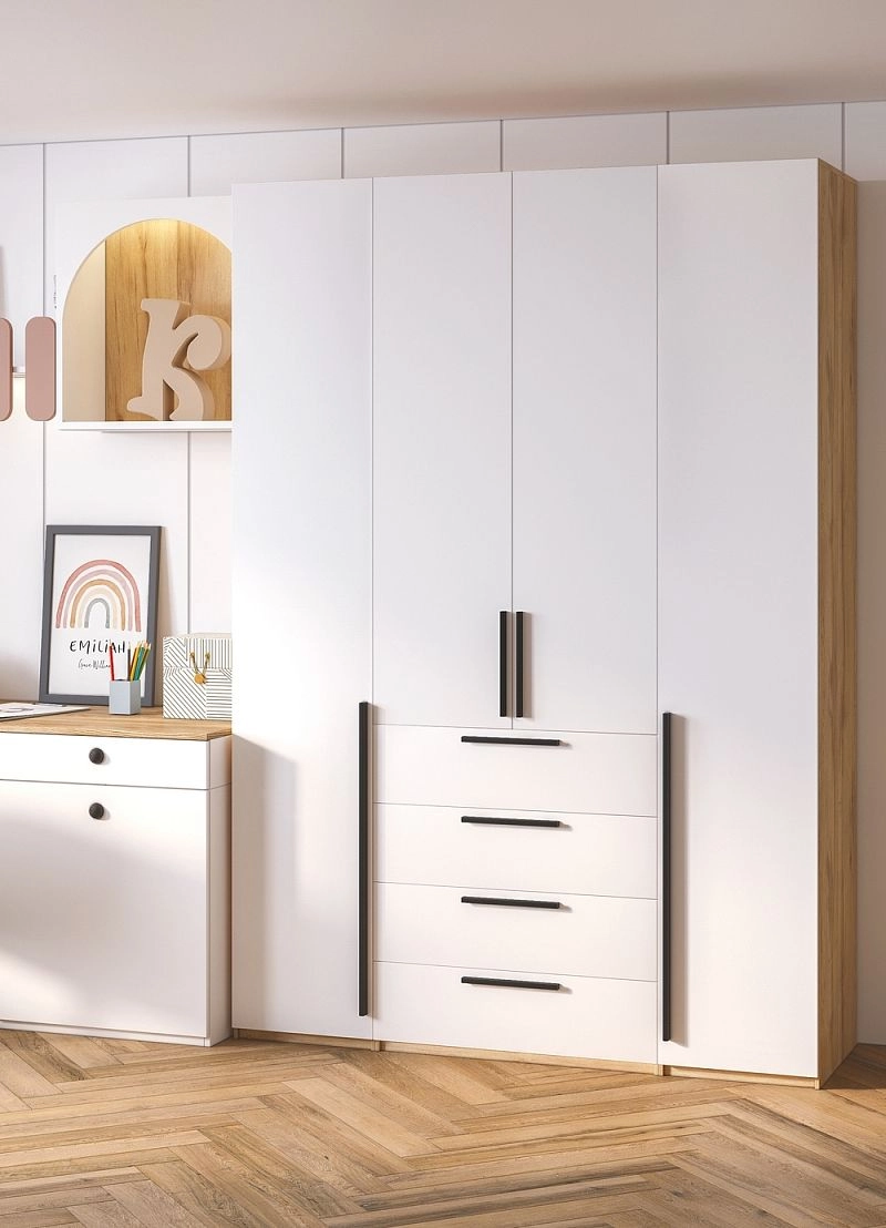 Шкаф распашной Хейсон-5 Белый Дуб Золотистый
