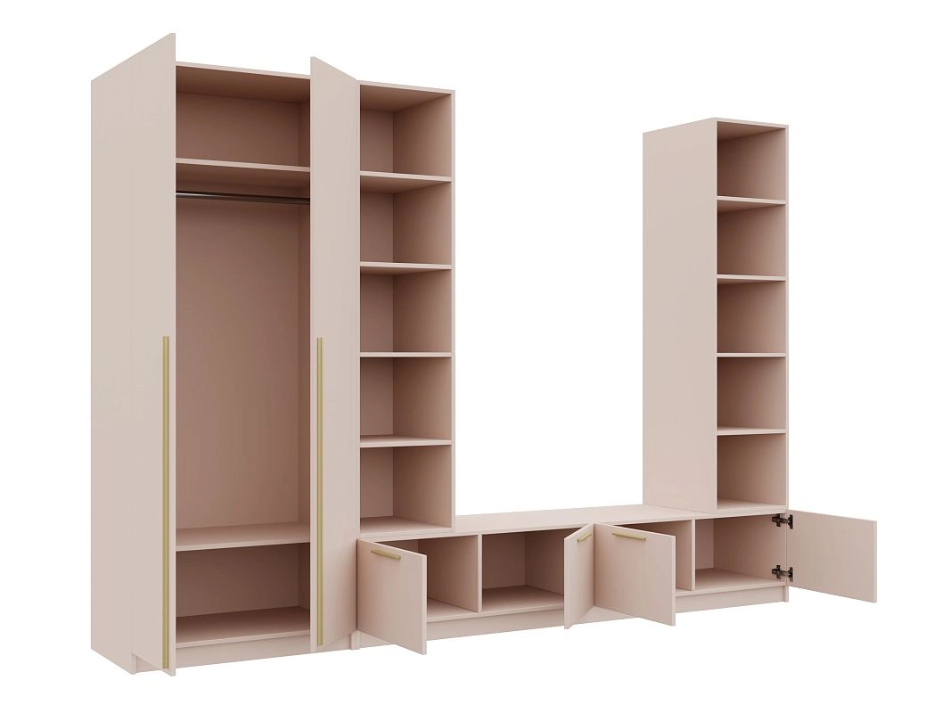 Петли без доводчиков. Направляющие шариковые 100% выдвижения без доводчика. Штанга металл Ф25мм. Ручки: Ручка CPA1 мебельная накладная м.ц.160 мм L 188мм,алюминий золото RCPА1A.188GADI, Ручка CPA1 мебельная накладная м.ц. мм L 1000мм,алюминий золото RCPА1A.1000GADI